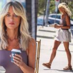 The KIIS FM host looked stylish during the outing in a grey leotard and a comfortable white skirt