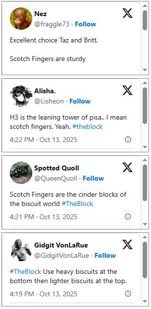 The Block fans point out one issue they had with the bikkie tower challenge